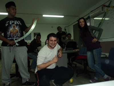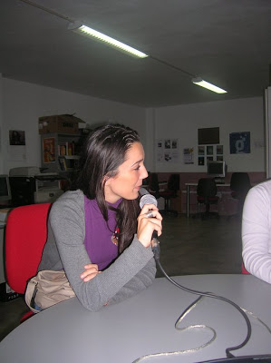 El Jueves 28 de Octubre del 2010 Javier Gutierrez, profesor del taller de Radio en el Capi del Puche, me invitó al programa para acercar mi trabajo a los jóvenes del barrio de Almería, en su mayoría marroquies. Los chicos aprenden a realizar un programa y son ellos los que te entrevistan, tienen edades desde los 14 años hasta los 20 años. La experiencia es super enriquecedora, hablamos de muchisimas cosas, y ellos también me contaban a mi. Tienen grandes sueños e ilusiones. Lo que mas les fascinó fue el sable, me tradujeron la inscripción del mismo y aprendieron a ponerselo en la cabeza. Hablamos de cantantes como Oum Kalthoum, Nancy Ajram, también hablamos de bailarinas (aunque reconocen no conocer sus nombres), costumbres, comida… fue apasionante, había alguna diferencia de opinión que lo hacia mas divertido.